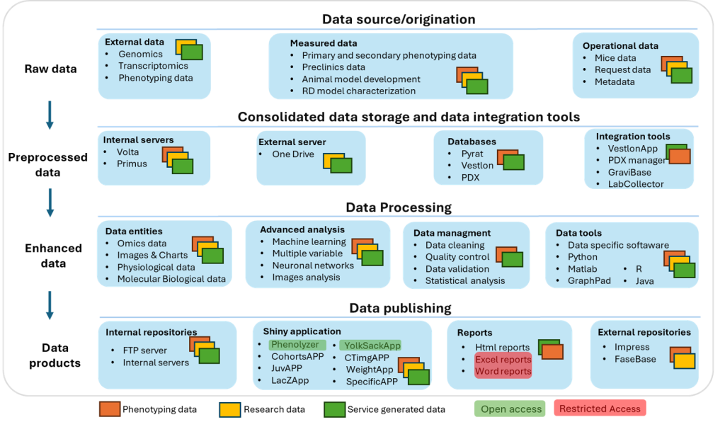 The head of the unit serves as the Data Manager, overseeing data stewardship, metadata standardization, documentation, and regulatory compliance. All activities are conducted in accordance with a formal Data Management Plan (DMP), which defines procedures for data handling, storage, security, and sharing.